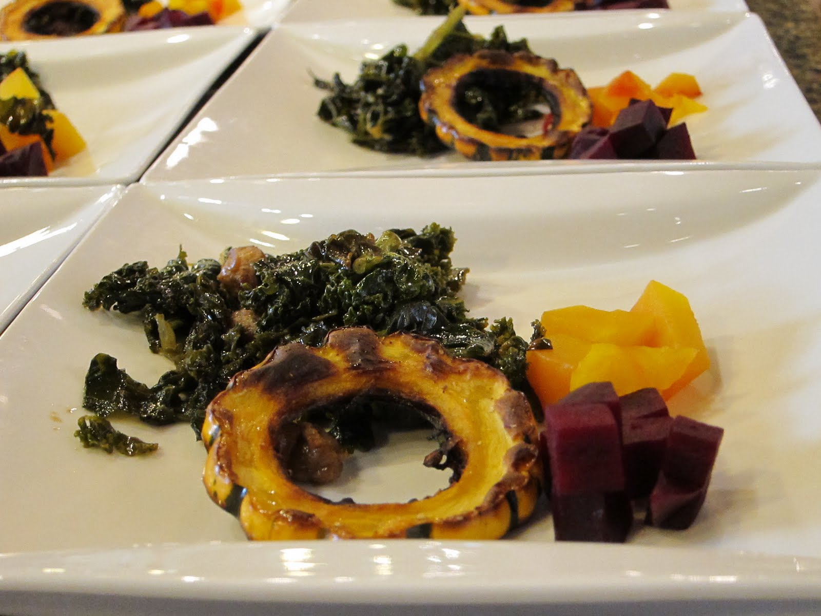 We start with fresh veggie spring rolls, nicely presented, and then split a very spicy green papaya salad and a chicken garlic stir-fry with veggies and brown rice. After tip, we each spend a little over $17. (More than I’d really like for lunch, but next time I need to pay attention to the prices on the menu, not just the food.)