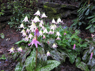 Beneath some of the rhodies are sweet hellebores, snowdrops, and a few other flowers I can’t identify. (My mother was the botanist in the family, not me.)